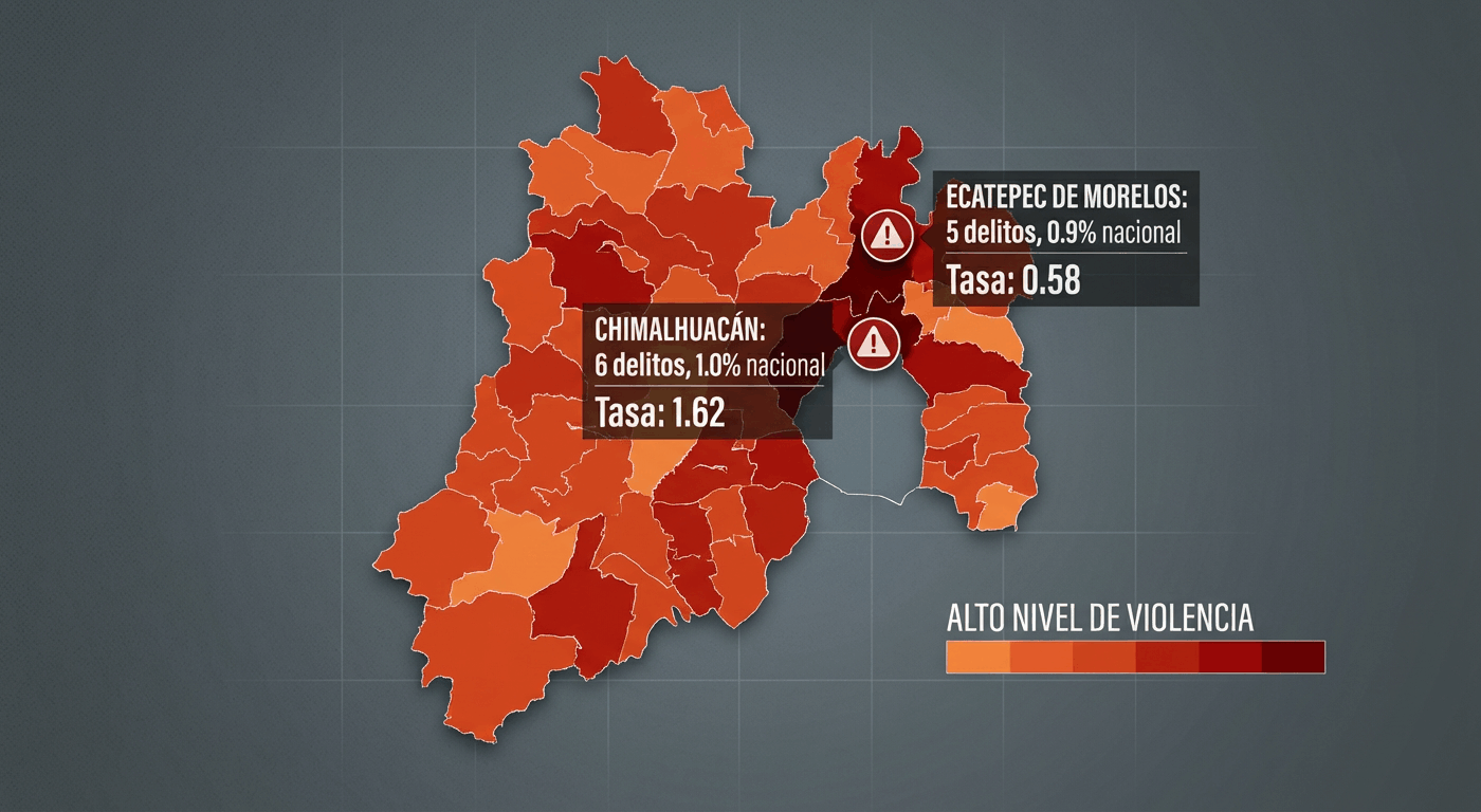 Chimalhuacán: 6 delitos (1.0% del total nacional).