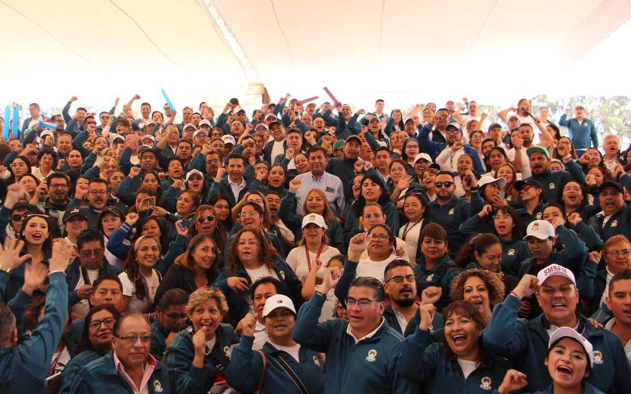 “Quiero saludar en especial a los docentes del SMSEM (…) no es casualidad que aquí el día de hoy me encuentre en Texcoco, en mi casa y con mi gente”, señaló al iniciar su intervención en el municipio de origen.