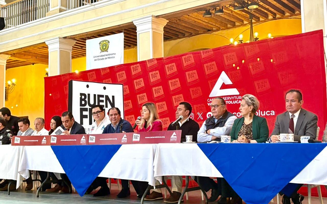 Con la participación de autoridades municipales y representantes empresariales, la CANACO Valle de Toluca presentó los detalles del Buen Fin 2025, la gran fiesta público-privada del consumo responsable en México. Este año se realizará del 15 al 19 de noviembre, con una derrama económica estimada en 28,750 millones de pesos para el Estado de México y ventas superiores a los 200 mil millones a nivel nacional.