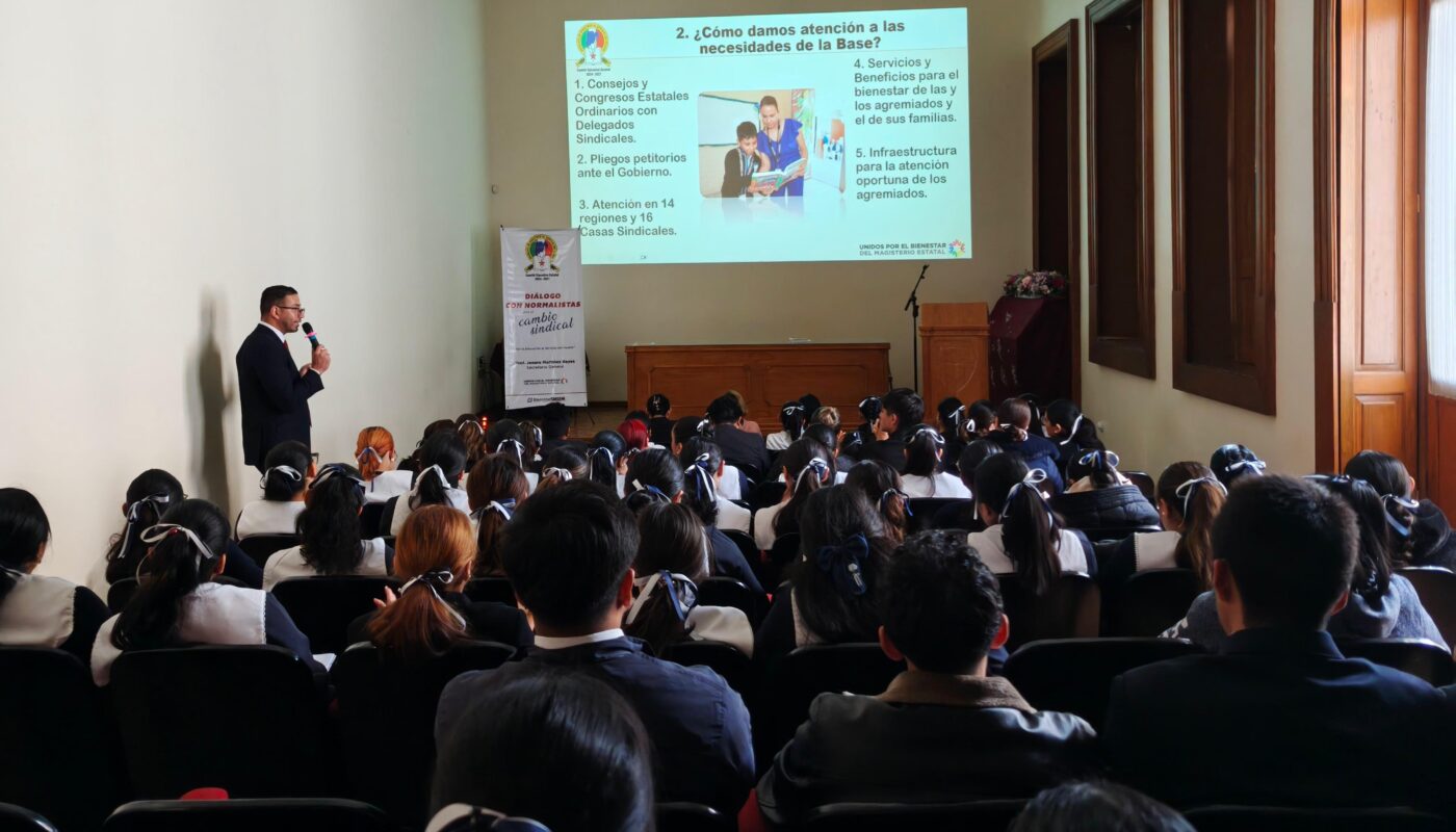 La actividad, denominada “Diálogo con Normalistas por el Cambio Sindical”, forma parte de la estrategia de vinculación que impulsa el Secretario General Jenaro Martínez Reyes, quien busca fortalecer la identidad sindical desde la formación docente.